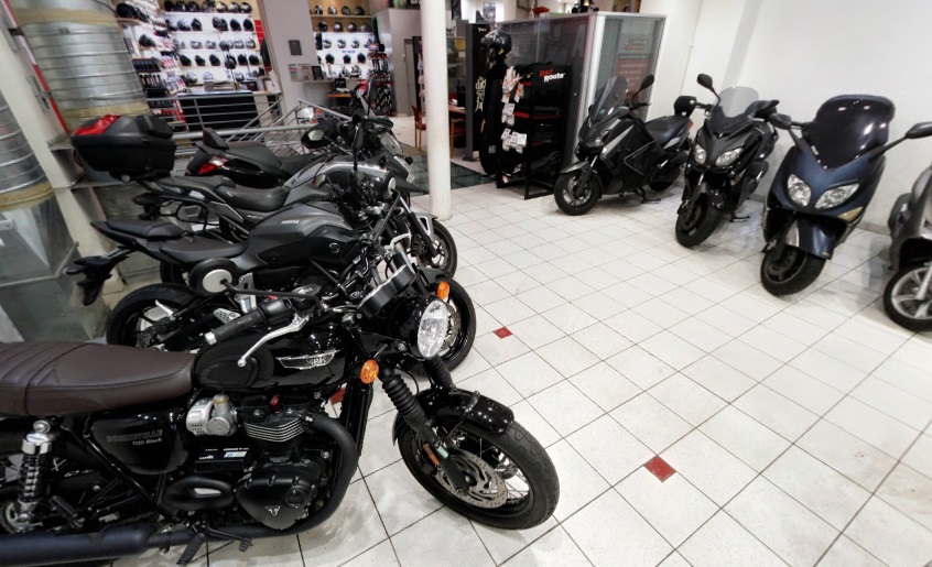 500 m² d'exposition de véhicules neufs et d'occasion ainsi que des accessoires moto, scooter et pilote.