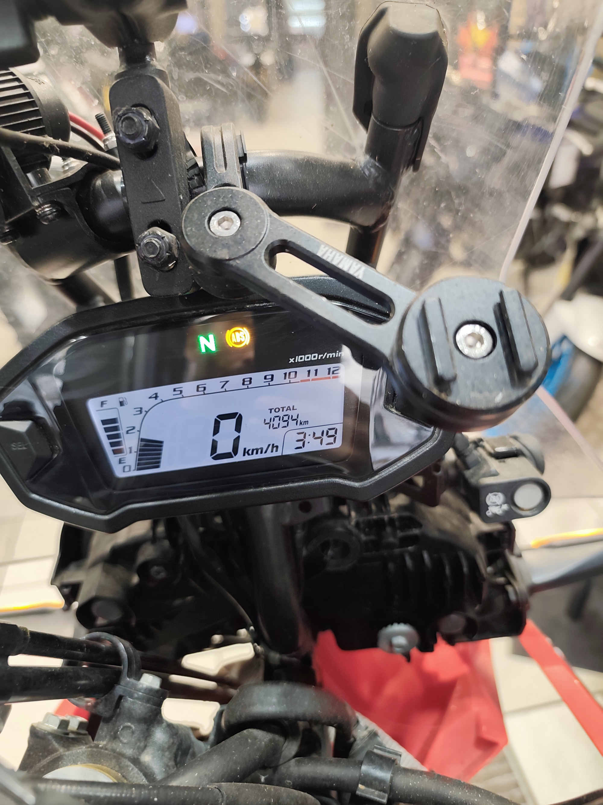 Equipé pour rouler en chemin: pneus crampons Michelin enduro medium, bib mousse, crash bar, pares main, sélecteur, pédale de frein, reposes pieds racing, rehausse guidon, prise usb, support gps garmin.